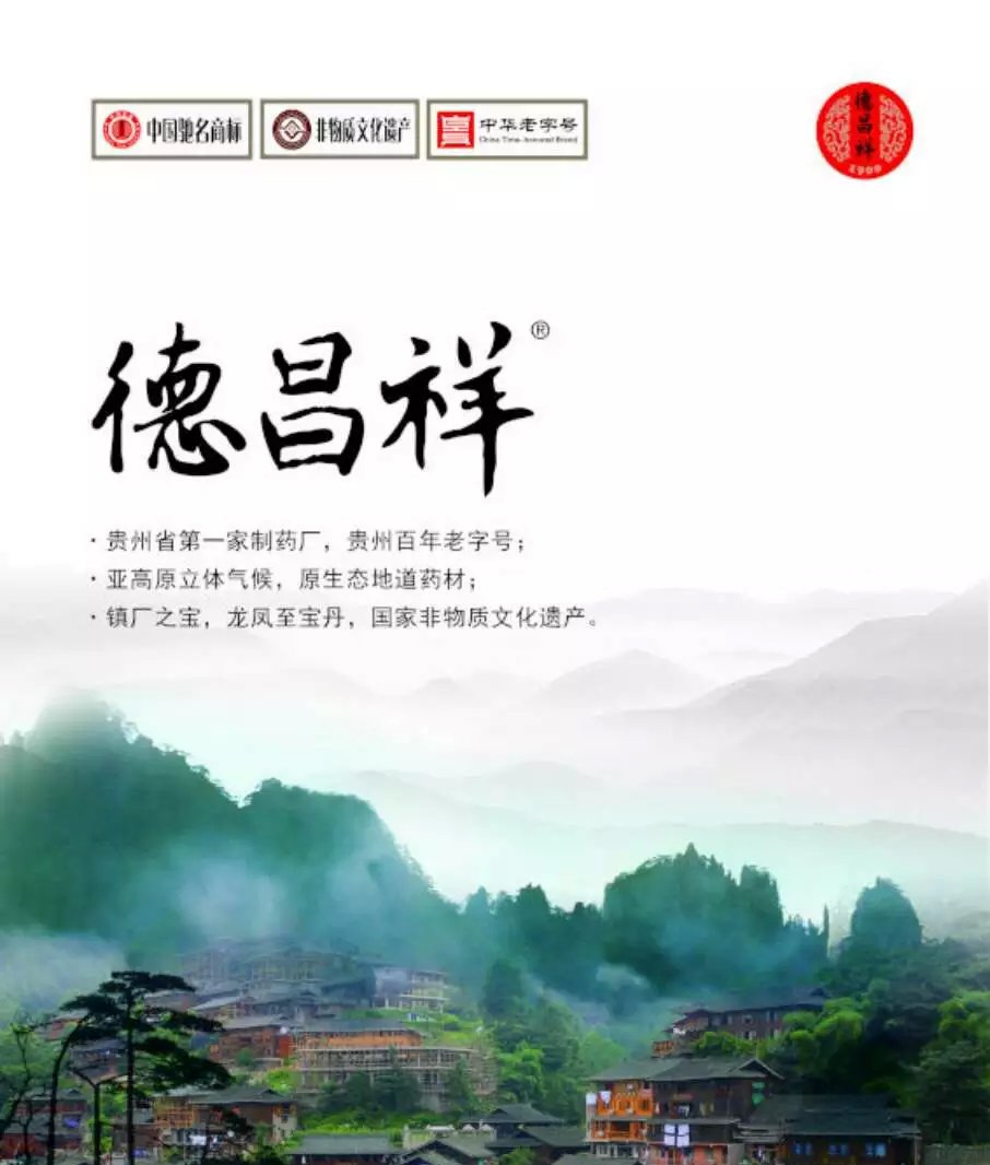 中药不仅是中国的国家历史传承文化,也是世界文化的一颗璀璨明珠。其中,贵阳德昌祥的“龙凤至宝丹”是拥有百年历史的中药,曾远销东南亚,并广受好评。贵阳德昌祥于1900年成立,是贵州省第一家制药厂。贵州独特的亚高原立体气候、原生态地道药材,为德昌祥能制作出“龙凤至宝丹”这样的传世经典奠定了坚实的基础。“龙凤至宝丹”在2014年获得县级非物质文化遗产称号,在2015年荣升为市级非物质文化遗产。这证明了贵州政府对“龙凤至宝丹”的信赖和对德昌祥的信任。