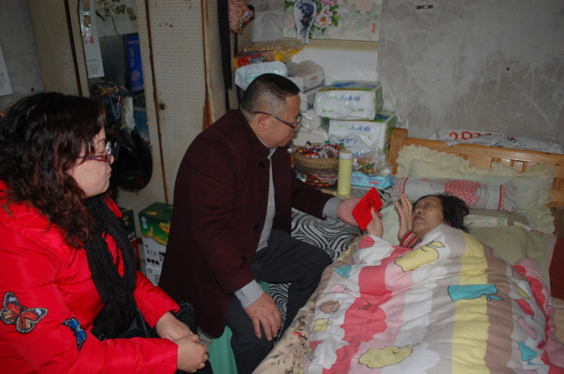 接着,姚总一行来到了退休老干部饶万禄家里。饶万禄,年轻时一直担任公司工程师一职,数十年如一日,兢兢业业,在岗位上做出了很大的贡献。现如今,饶工及其夫人因年迈双双抱病,常年需靠药物维持,家庭生活捉襟见肘。当饶万禄接过慰问金及公司的企业文化资料后,乐呵呵地说:“感谢企业对我们的关心照顾。我经常从报刊上看到现在咱们企业欣欣向荣,不断发展壮大,这都是姚总领导有方,罗总带领公司广大员工精诚团结,辛勤工作的结果,作为企业的一名老同志,我感到无比的高兴。”