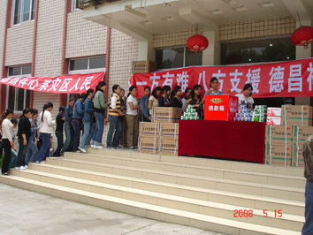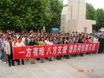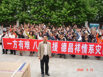 2008年5月15日,公司在扎佐工厂开展“一方有难、八方支援、德昌祥情系灾区”员工募捐活动,公司所有员工纷纷向灾区同胞表达关爱之情,虽然很多员工家庭并不宽裕,但是他们向灾区人民表达的这份情意却是真挚的、感人的。