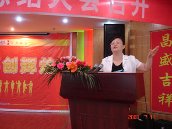 德昌祥总经理蒋晓文女士对08年上半年工作的总结发言
