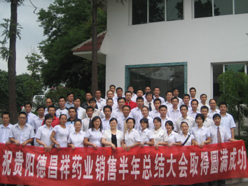 7月11日—13日,贵阳德昌祥药业有限公司2008年上半年销售工作会议在修文珍珠岛隆重召开。出席本次会议的集团公司领导有:人力行政总监陈龙先生、财务经理李艳女士,以及汉方报主编尹晓薇女士;出席本次会议的公司领导有:董事长姚厂发先生、总经理蒋晓文女士、财务总监杜鉴韬先生、副总经理马卫东先生、人力行政总监罗战彪先生,以及公司销售总监邹晓生先生、市场总监陈宇航先生,公司各市场主要负责人员、销售人员、销售管理及服务部门人员参加了本次大会,本次会议由陈宇航先生主持。