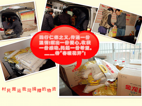 德昌祥药业自创立以来,就以德立足社会,以德回馈社会,积极投身社会公益活动。此次捐赠更是怀着对社会的一份责任,怀着对父老乡亲们的一片真情,怀着为同步小康贡献绵薄之力的良好愿望,期望通过企业送去的丝丝温暖,让村民们度过一个平安祥和的春节;希望通过企业传递的微薄爱心,让更多的社会团体、企业单位投入到帮助困难群众脱贫致富的行动中来,希望通过企业转达的点点鼓励,让村民们发奋图强,脱贫致富奔小康。