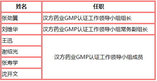 汉方药业GMP认证工作领导小组