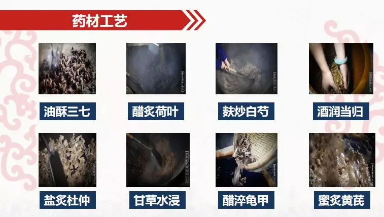 【主要成份】 当归(酒炙)、香附(醋炙)、白芍、熟地黄、阿胶、茯苓、党参、黄芪、山药、白术、女贞子(酒炙)、龟板(醋炙)、山茱萸、续断、杜仲(盐炙)、肉苁蓉、覆盆子、鹿角霜、川芎、丹参、牛膝、益母草、延胡索等。