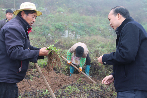 现场采挖丹参的农民王大伯说:“大石乡本是少数民族贫困乡,以前乡亲们是通过外出打工贴补家用,这样既不能照顾家里的老人、小孩,也不能耕作自有的土地。自这片丹参始种植以来,我们在兼顾自己农活的同时,帮助企业种植、培育、管理丹参,企业每月支付1800块钱,现在,村里的大部分人都不外出打工了,有的人家自己也栽种起了丹参。”